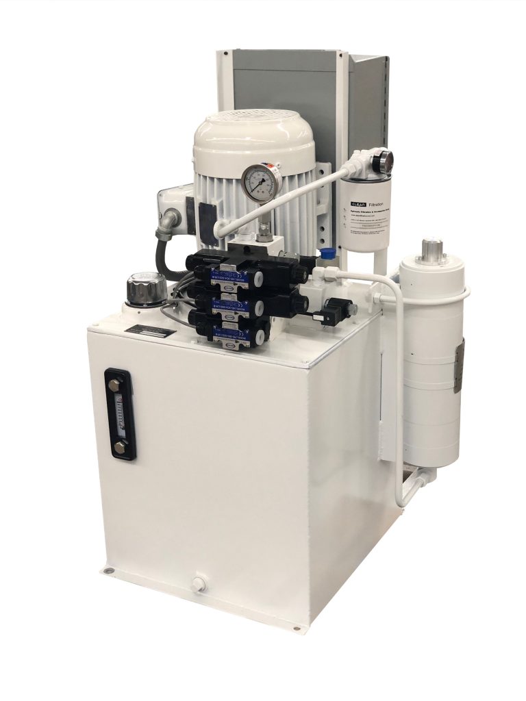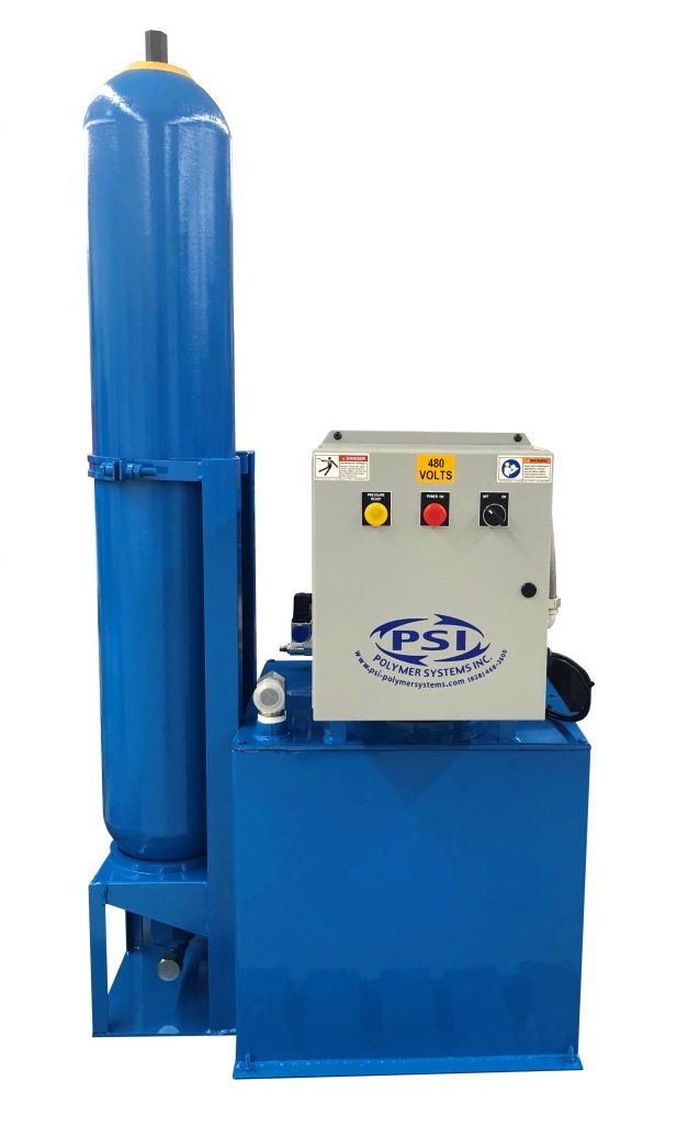 PSI Hydraulic Power Units (HPU) provide the power to actuate hydraulically operated screen changers and divert valves. Depending on the functional demand, HPUs are provided with pressure accumulators for a rapid change, or without an accumulator when a steady flow of pressure suffices to operate the system. A single HPU can be arranged to operate multiple devices, either hard plumbed or with quick-disconnects. HPUs are designed to operate with petroleum-based fluids and can optionally run water glycol.
